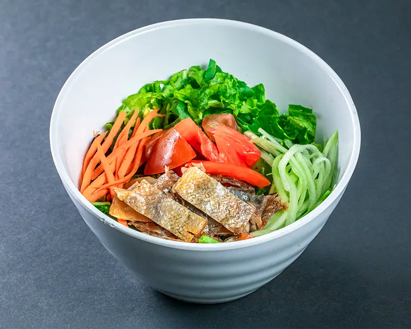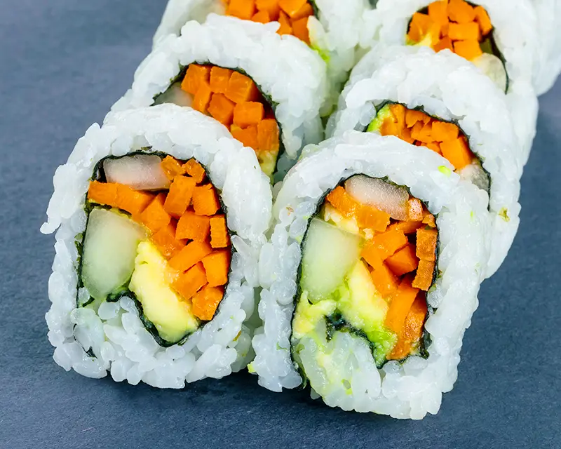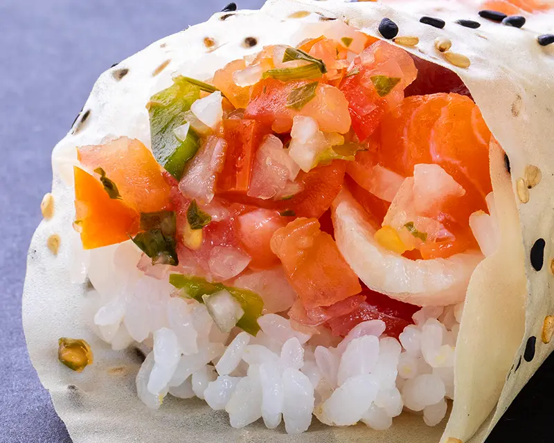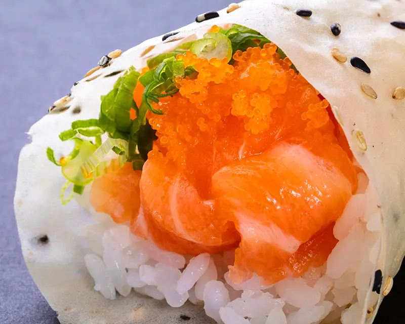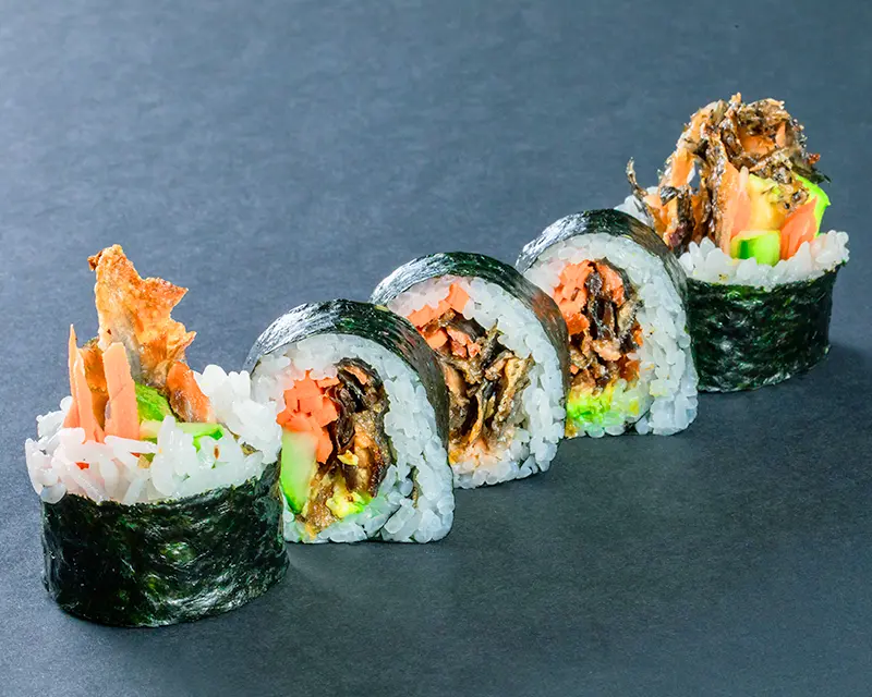 Crispy salmon skin, avocado, carrot, cucumber.