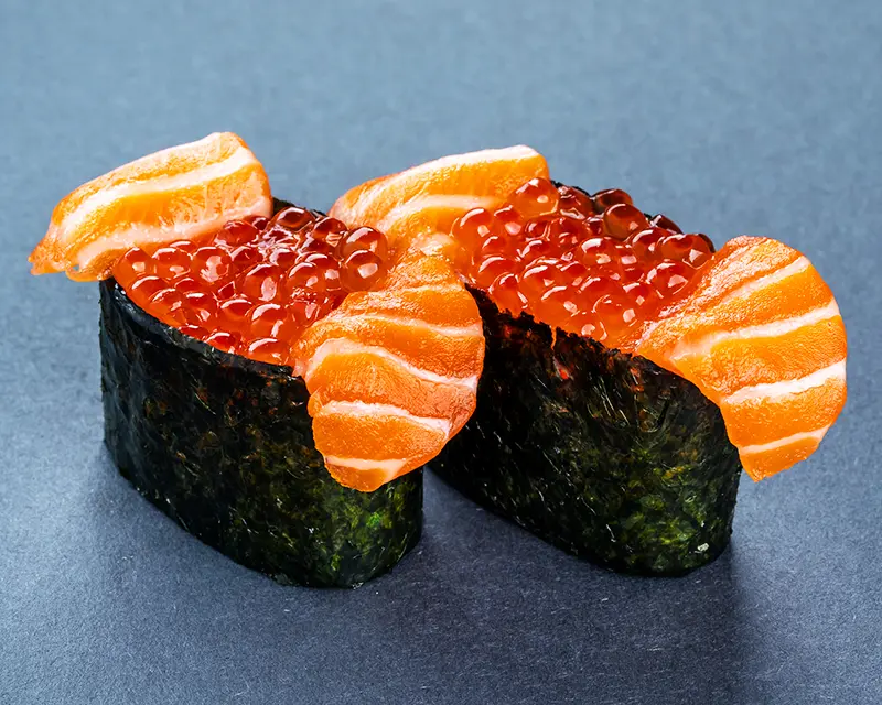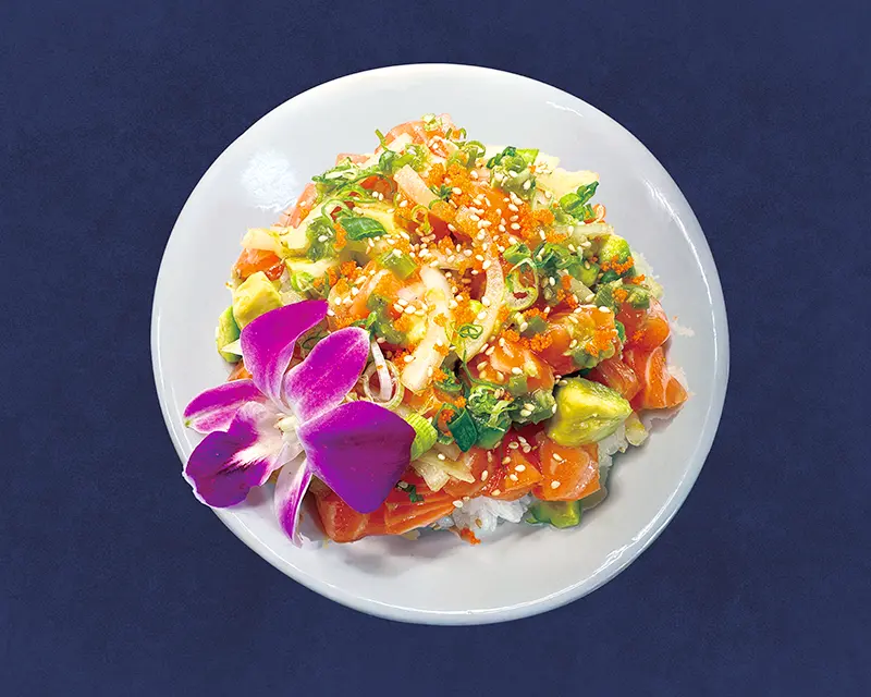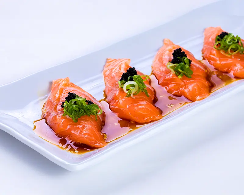 Salmon, smelt egg, green onion, and truffle oil
