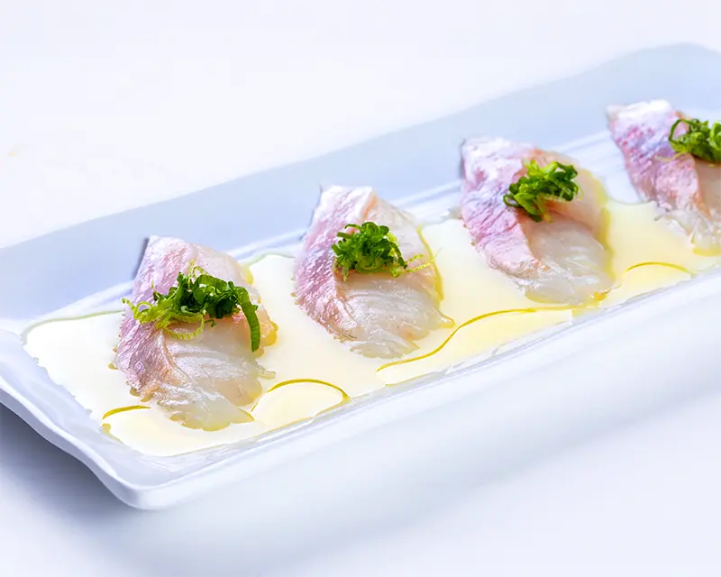 Yellowtail, smelt egg, green onion, and truffle oil
