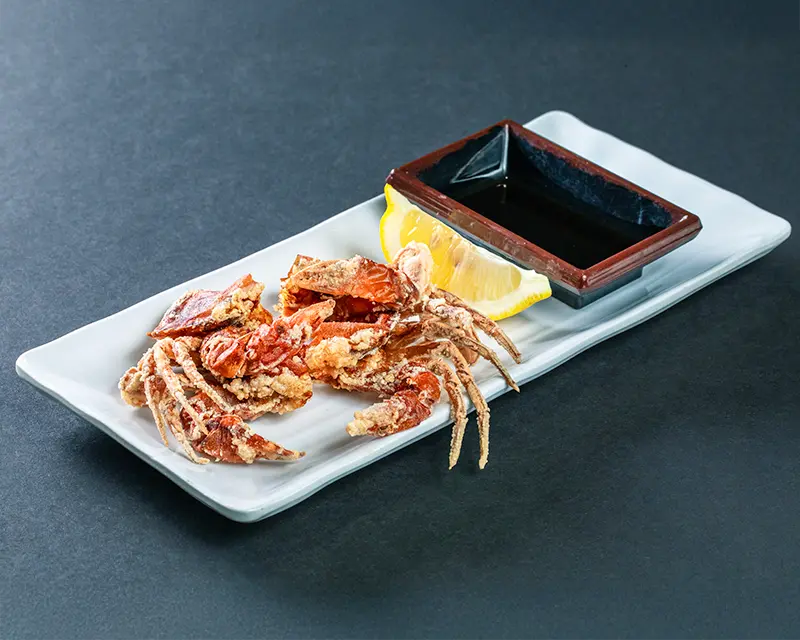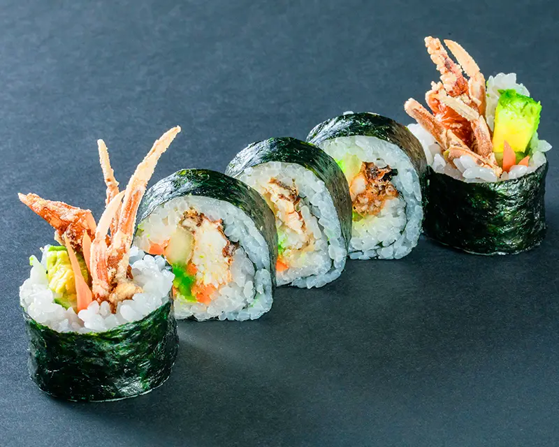 Deep fried soft shell crab, avocado, carrot, cucumber.