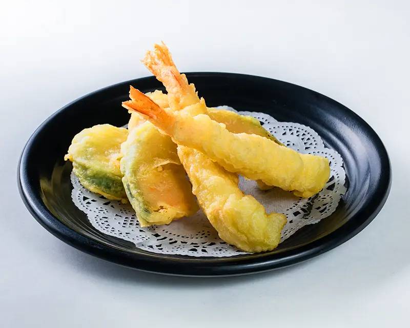 Shrimp tempura, avocado, and red onion roll. Topped with shrimp, spicy mayo, eel sauce, sriracha, and garlic chips.