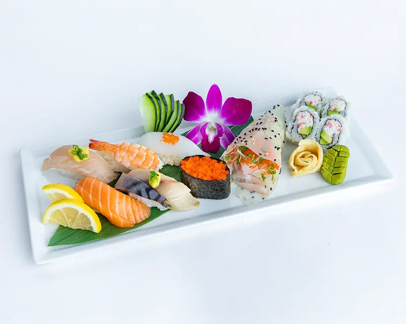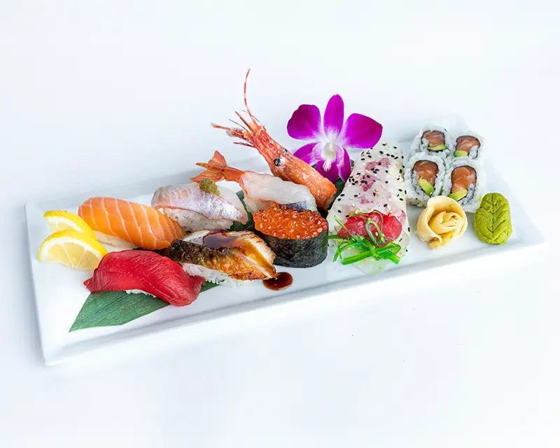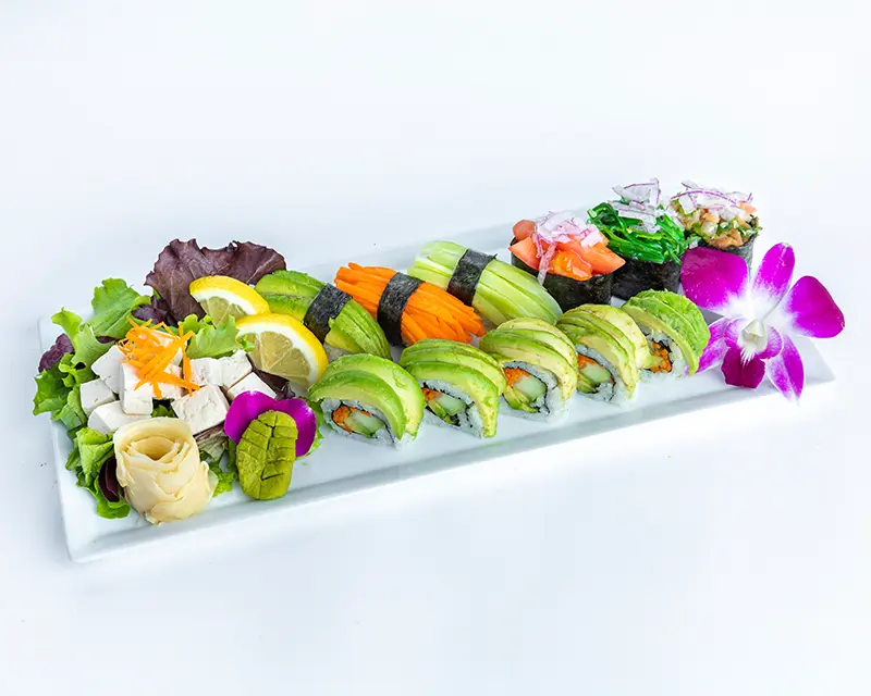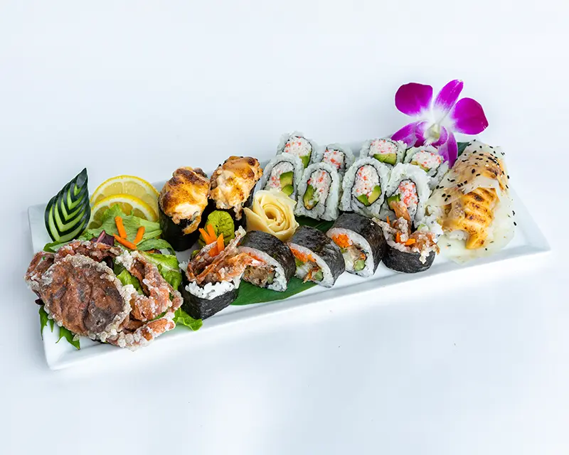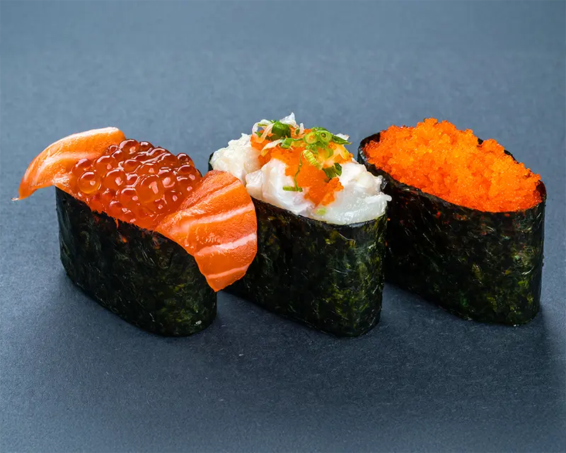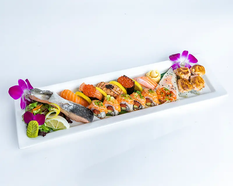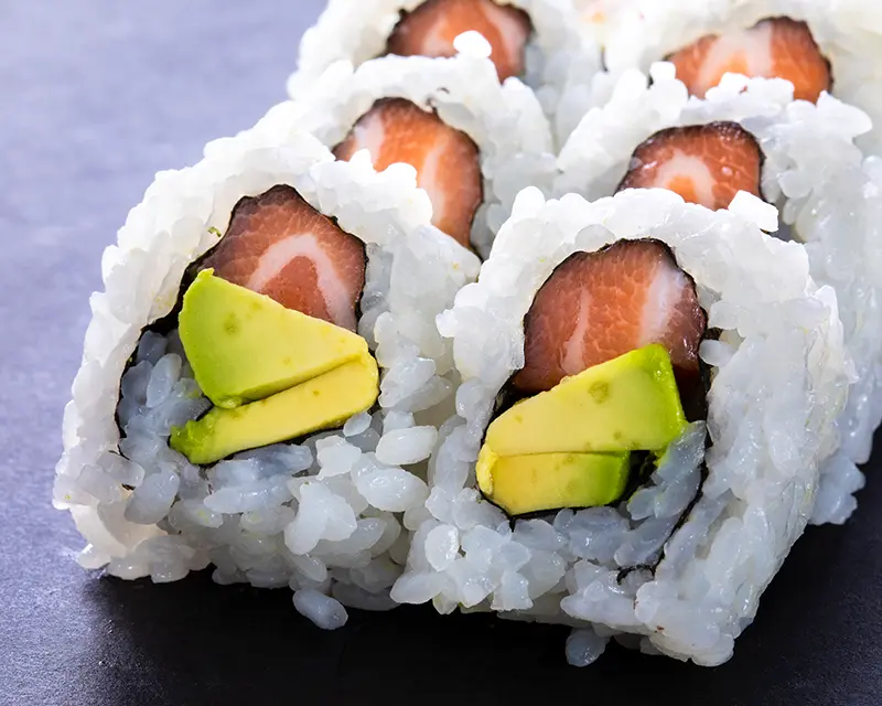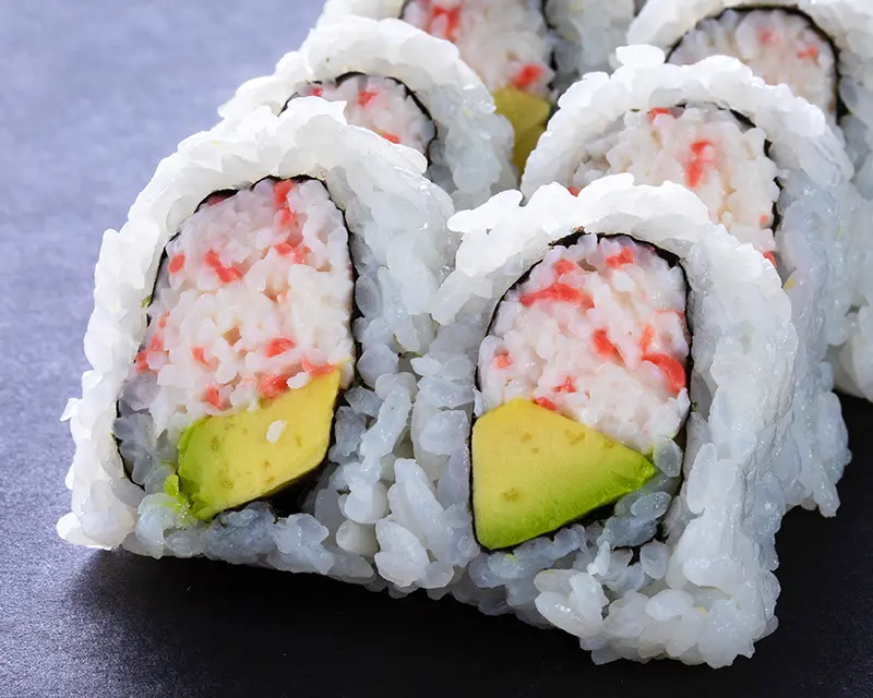 California roll. Topped with salmon, tuna, yellowtail, and avocado.