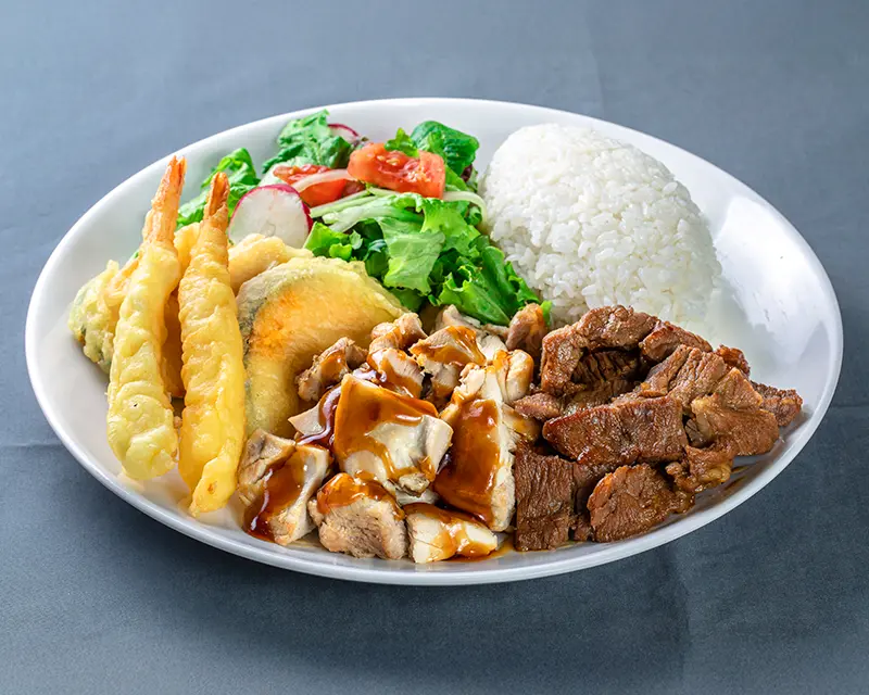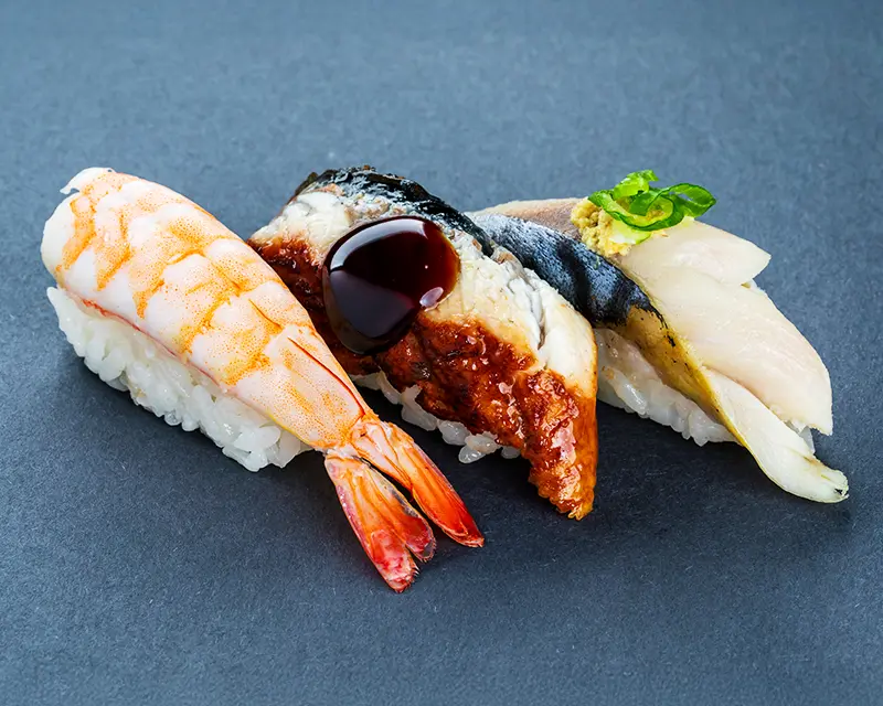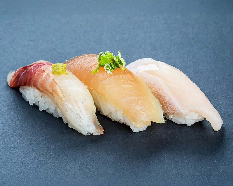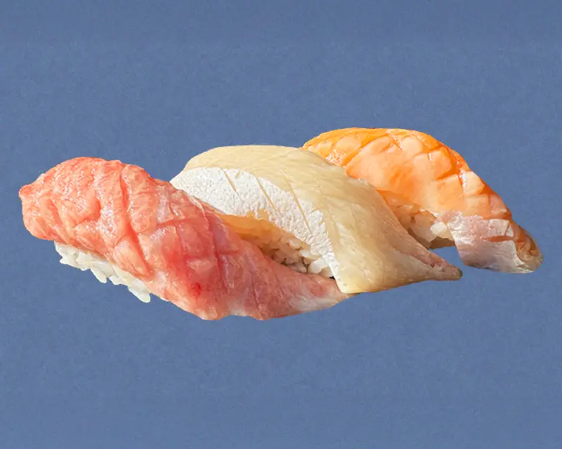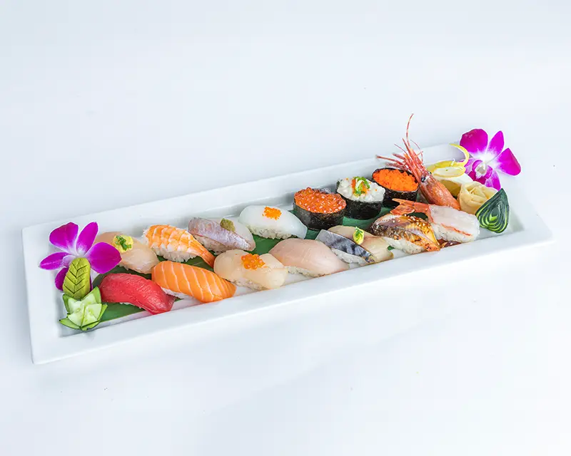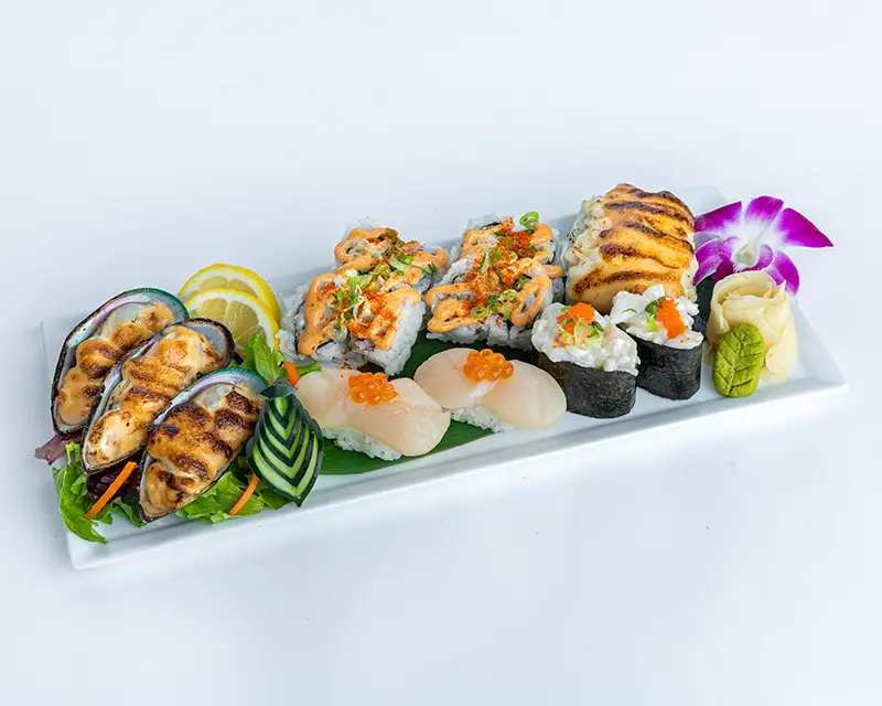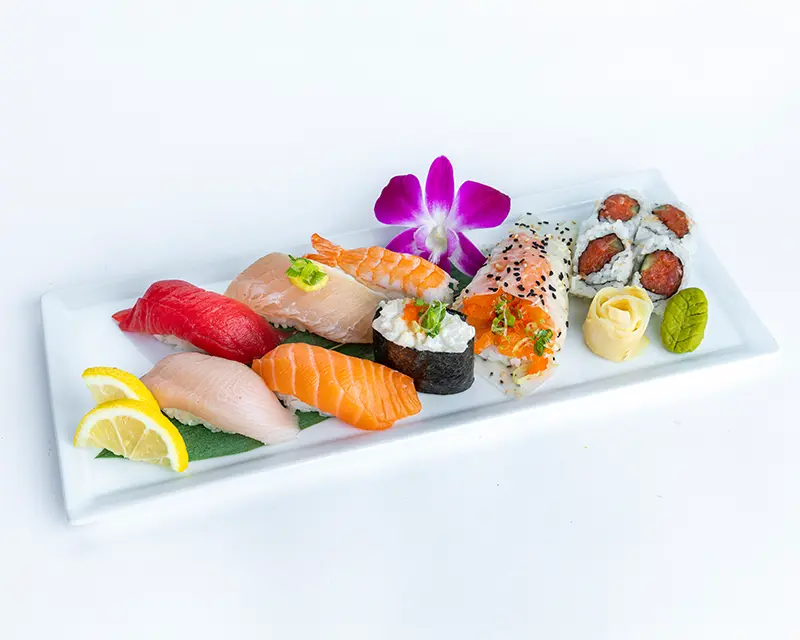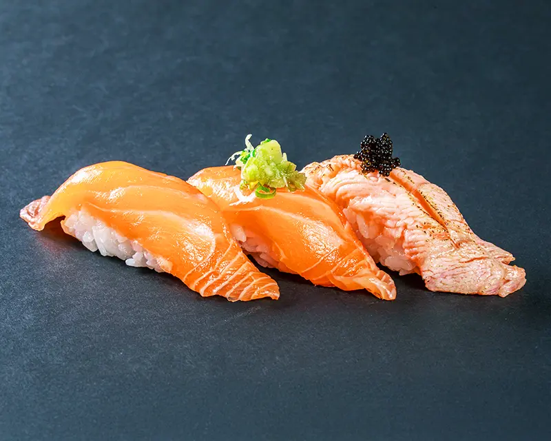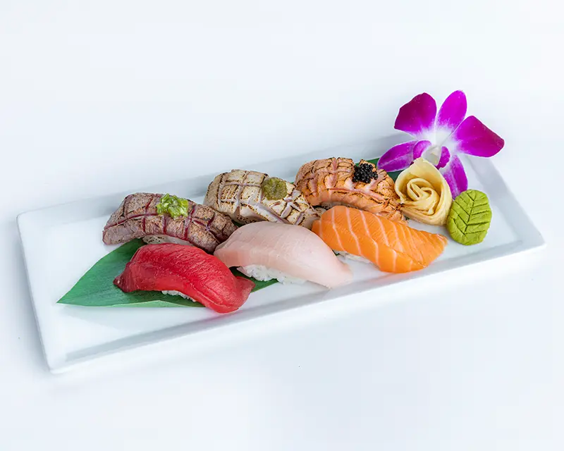 California roll. Topped with salmon, tuna, yellowtail, and avocado.