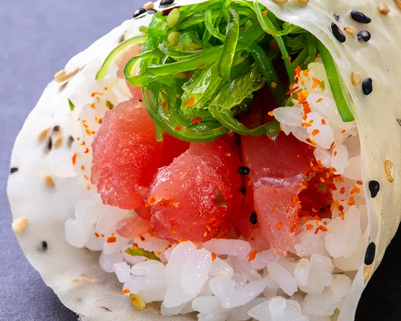 Tuna, seaweed salad, and poke sauce