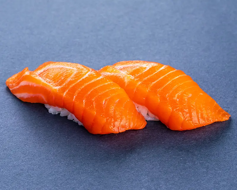 Salmon and cream cheese on top of a California roll.